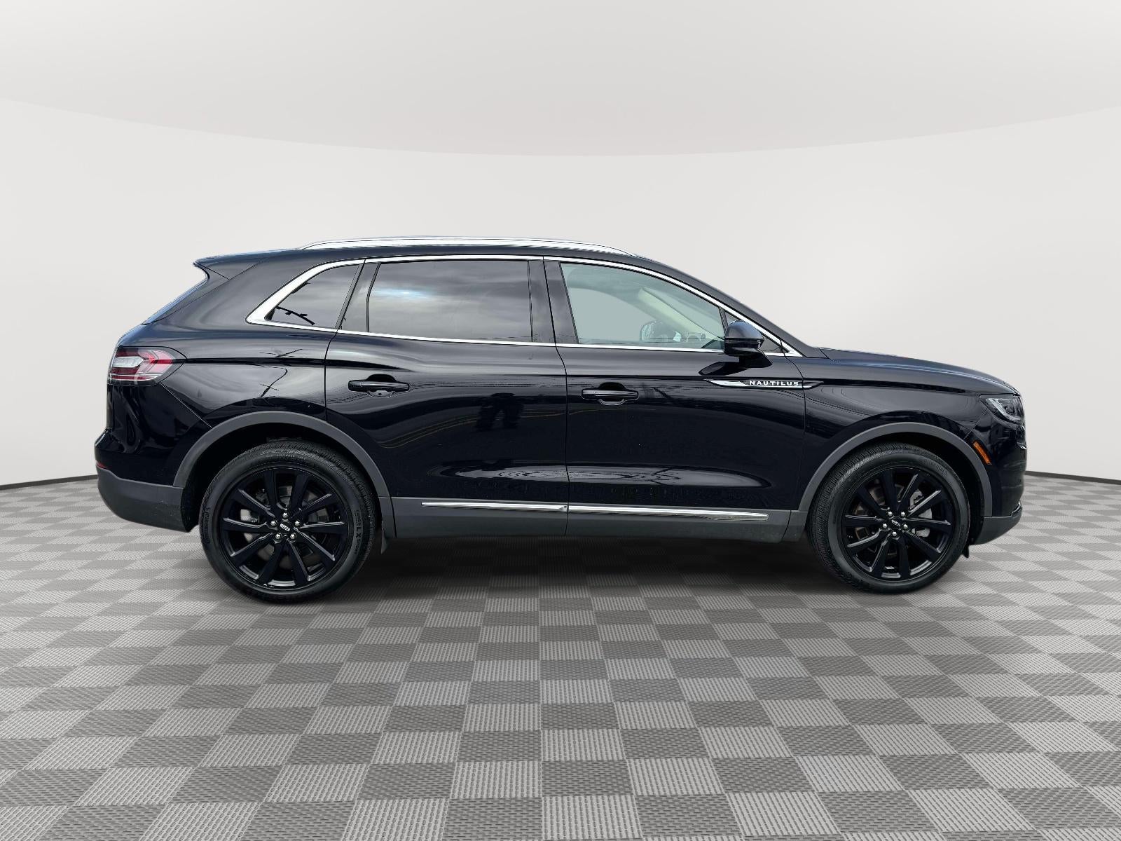 Infinite Black Metallic Clearcoat 2023 Lincoln Nautilus Reserve AWD 8-Speed Automatic 2.0L Turbocharged 10 Speakers, 20'' Wheels, 3.80 Axle Ratio, 4-Wheel Disc Brakes, ABS brakes, Air Conditioning, Alexa Built-In, Alloy wheels, AM/FM radio: SiriusXM with 360L, Auto High-beam Headlights, Auto tilt-away steering wheel, Auto-dimming door mirrors, Auto-dimming Rear-View mirror, Automatic temperature control, Body-Color Lower Grille, Body-Color Painted Nautilus Badging, Brake assist, Bumpers: body-color, Compass, Delay-off headlights, Driver door bin, Driver vanity mirror, Dual front impact airbags, Dual front side impact airbags, Electronic Stability Control, Emergency communication system: 911 Assist, Equipment Group 200A, Four wheel independent suspension, Front anti-roll bar, Front Bucket Seats, Front Center Armrest w/Storage, Front dual zone A/C, Front reading lights, Fully automatic headlights, Garage door transmitter: HomeLink, Heated door mirrors, Heated front seats, Heated rear seats, Heated steering wheel, Illuminated entry, Knee airbag, Leather steering wheel, Low tire pressure warning, Memory seat, Monochromatic Package, Navigation System, Occupant sensing airbag, Outside temperature display, Overhead airbag, Overhead console, Panic alarm, Passenger door bin, Passenger vanity mirror, Power door mirrors, Power driver seat, Power Liftgate, Power moonroof: Panoramic Vista Roof, Power passenger seat, Power steering, Power windows, Premium Lthr-Trmmd Heated/Ventilated Comfort Seats, Radio data system, Radio: AM/FM/HD Audio System, Rain sensing wipers, Rear anti-roll bar, Rear reading lights, Rear seat center armrest, Rear window defroster, Rear window wiper, Remote keyless entry, Satin Roof Rack Side Rails w/o Crossbars, Security system, Speed control, Speed-sensing steering, Speed-Sensitive Wipers, Split folding rear seat, Spoiler, Steering wheel memory, Steering wheel mounted A/C controls, Steering wheel mounted audio controls, SYNC 4 w/Enhanced Voice Recognition, Tachometer, Telescoping steering wheel, Tilt steering wheel, Traction control, Trip computer, Turn signal indicator mirrors, Unique Body-Color Mesh Upper Grille, Variably intermittent wipers, Ventilated front seats, Wheels: 18'' Premium Painted Bright Machined Alum, Wheels: 20'' Black Aluminum.Recent Arrival!2023 Lincoln Nautilus Reserve
