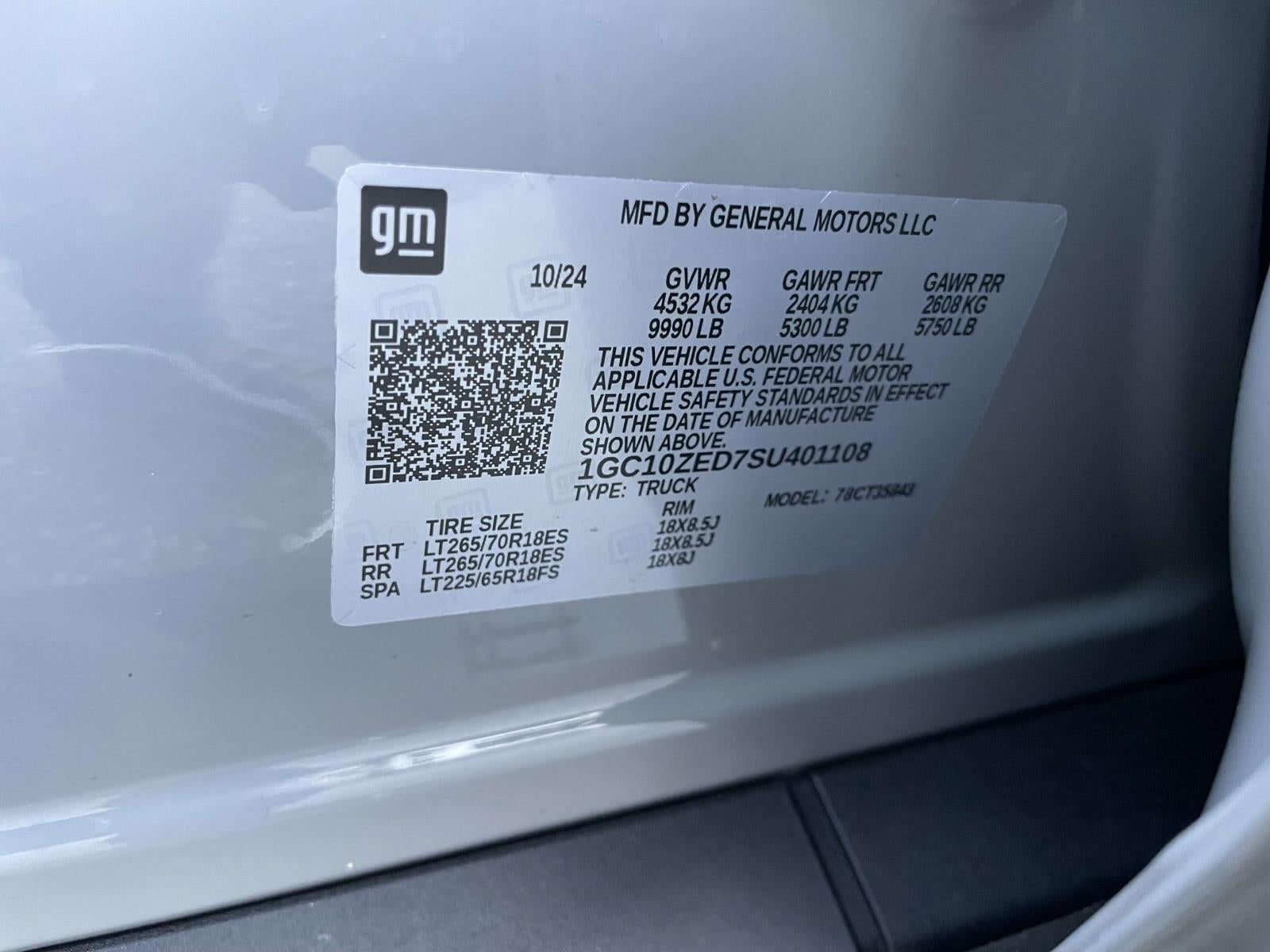 Slate Gray Metallic 2025 Chevrolet Silverado EV LT AWD 1-Speed Automatic Electric MotorOdometer is 3302 miles below market average!Also standard equipment on this and every vehicle is Complimentary 1 Year Maintenance, Complimentary Key Replacement, Complimentary Windshield Repair, Complimentary Interior/Exterior Protection, Complimentary Paintless Dent Repair, Complimentary Loaner Program (based on availability), Complimentary Shuttle Service, and a Complimentary Annual 26-Point Inspection. Subject to primary lenders approval. All prices exclude tax, title, tags, license, DMV, $175 NYS Doc Fee, finance charges (if applicable), documentation charges, emissions testing charges, or other fees required by law, vehicle sellers or lending organizations. Must take same day delivery. Vehicles are sold cosmetically as is.